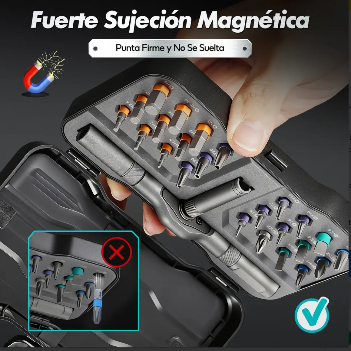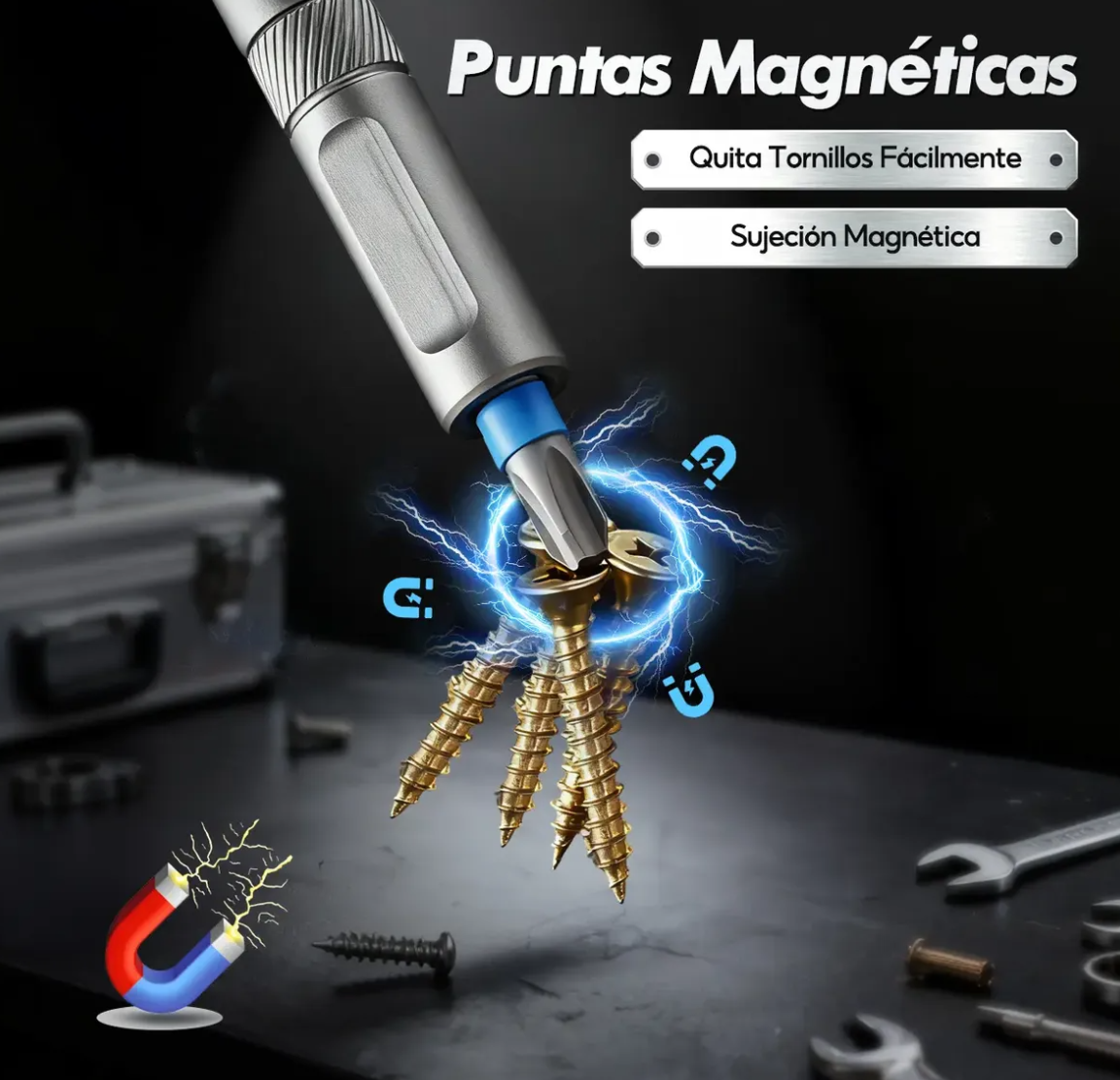 Todos los bits del juego de destornilladores tienen un potente magnetismo, lo que garantiza un cambio rápido y sencillo.
